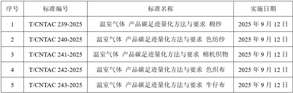 近日,由中国棉纺织行业协会(以下简称“中棉行协”)等单位牵头组织起草的《温室气体产品碳足迹量化方法与要求棉纱》等5项CNTAC团体标准(编号、名称见下表)于2025年9月12日正式发布实施。 近年来,中棉行协积极响应国家“双碳”战略,按照《2030年前碳达峰行动方案》部署要求,加快推进棉纺织行业绿色转型,深入推动绿色制造体系建设。未来,中棉行协将继续落实《关于加快建立产品碳足迹管理体系的意见》的相关要求,持续开展行业产品碳足迹核算与量化工作,加强标准落地实施,辅导纺织企业编制《产品碳足迹报告》,鼓励和引导企业制造绿色低碳产品等。同时,结合行业发展需求,进一步完善棉纺织行业绿色标准体系建设,为推动行业可持续发展做出更大努力。 (来源:中棉行协) 声明:凡于本网文章前标有“CTEI网讯”之文章即表示为本网原创、编译、第一信息源、第一媒体合作方等,如需转载请务必标注文章来源自“中国纺织经济信息网 www.ctei.cn”,本网保留法律权利。